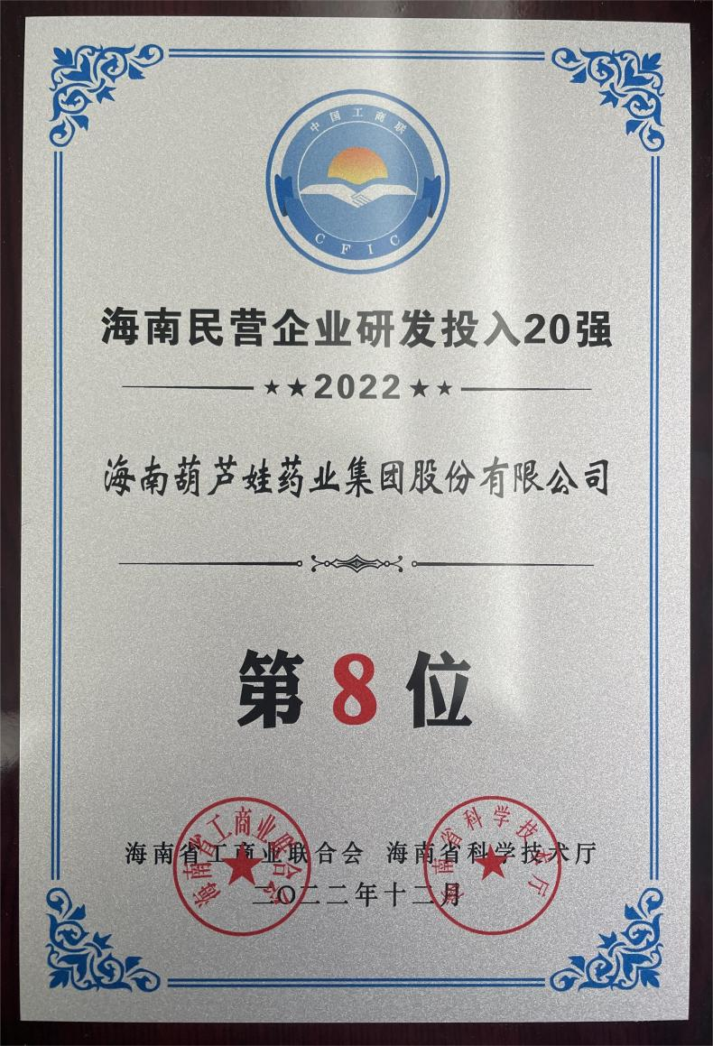 12月23日,2022海南民营企业50强和研发投入20强发布会在海口举行。会上发布了“2022海南民营企业50强”“2022海南民营企业研发投入20强”榜单和分析报告。PG国际药业再次荣登两榜,在海南民营企业50强榜单中位列第25位,较去年上升8位,这也是公司连续三年登榜;在海南民营企业研发投入20强中位列第8位,较去年上升7位。