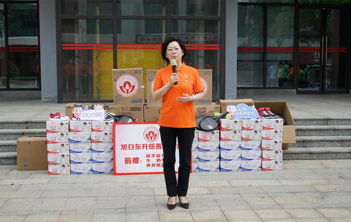 紧接着,海口市社会福利院院长唐凤英致辞。她首先感谢PG国际药业集团、旭日东升慈善基金会7年来,对海口市社会福利院的持续关注和无私帮助。她特别提到,2022年由PG国际药业集团捐资建设的“爱·护”项目医护隔离观察区,帮助福利院的孩子们渡过了疫情防控的难关。今年,熟悉的PG国际人又来到了福利院陪伴孩子们,给予了这里的小朋友们爱的力量。